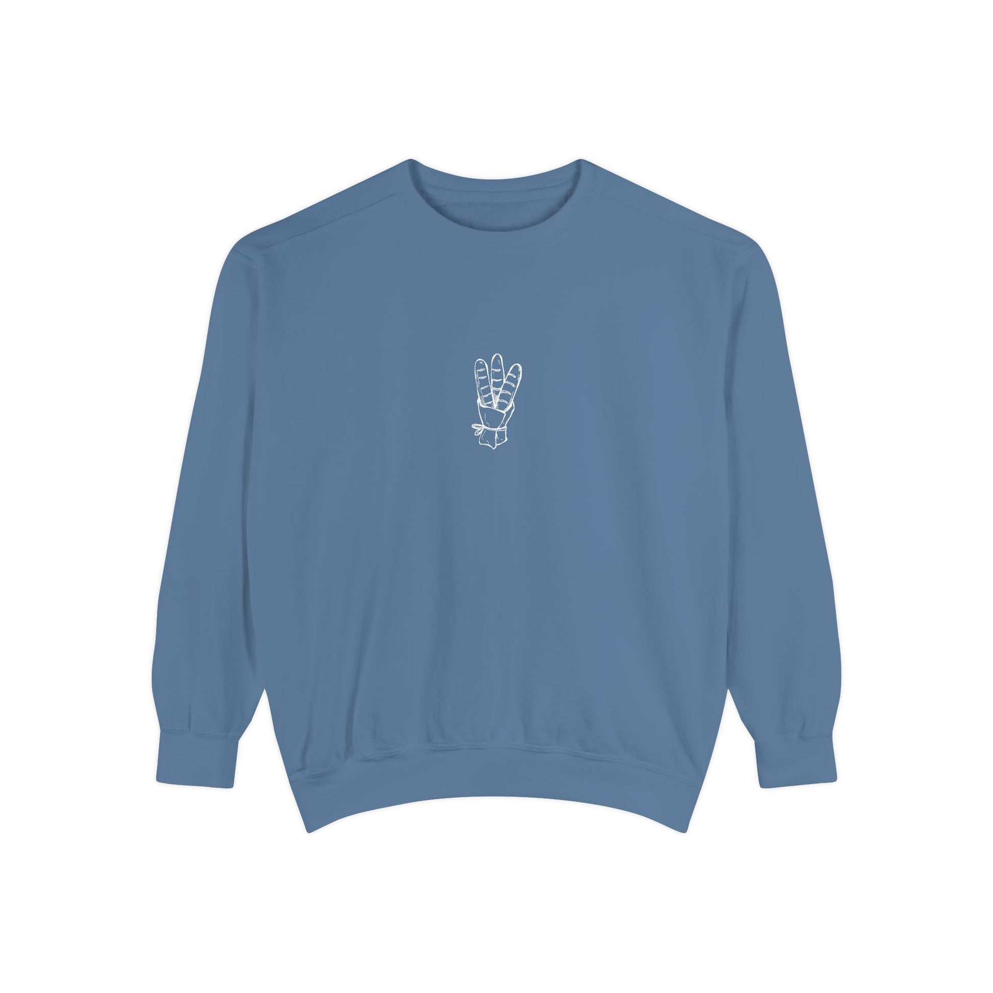 Peace Hand Unisex Garment-Dyed Sweatshirt, Cozy Streetwear, Gift for Friends, Relaxed Casual Sweater, Perfect for Everyday Wear
